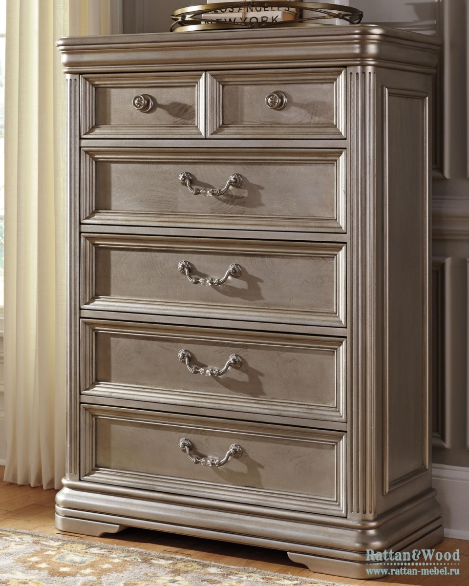 Оригинальный комод «Катрин 92.19» входит в коллекцию мебели для спальни «Катрин». Ажурная декоративная накладка окрашена вручную. Фасады ящиков украшены оригинальной фрезеровкой.