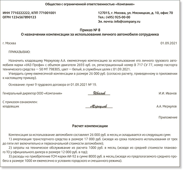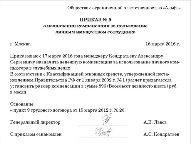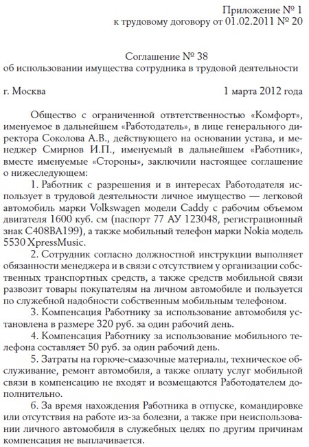 Компенсации за использование работником личного имущества 147 фото
