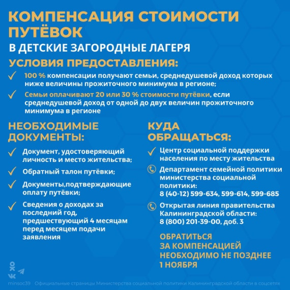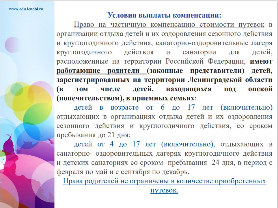 Компенсация оплаты лагеря