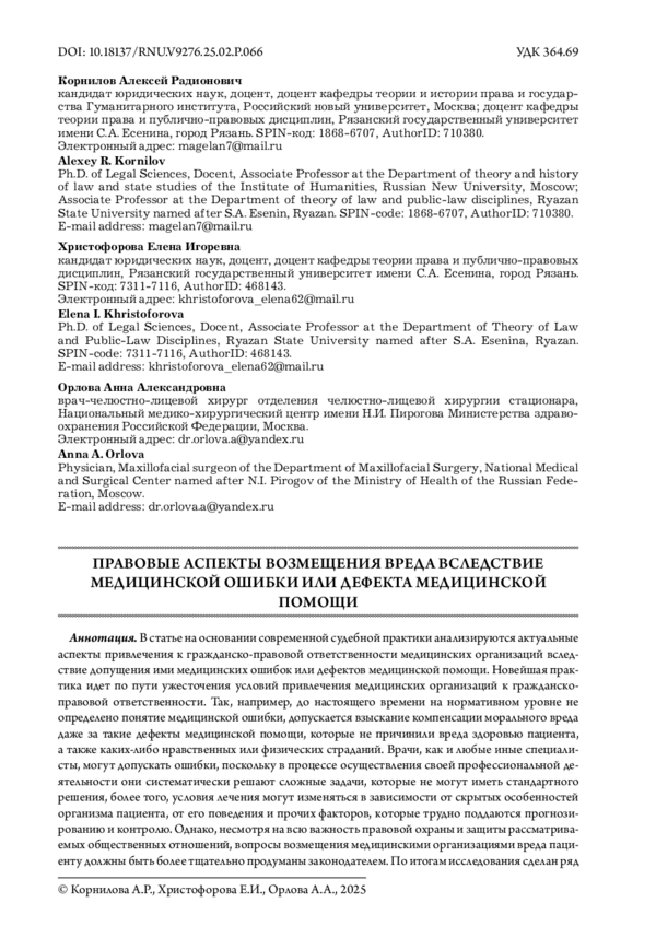 Компенсация врачебной ошибки