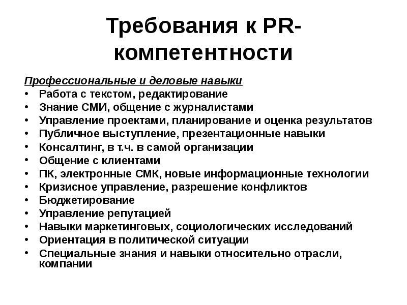 Компетенции pr