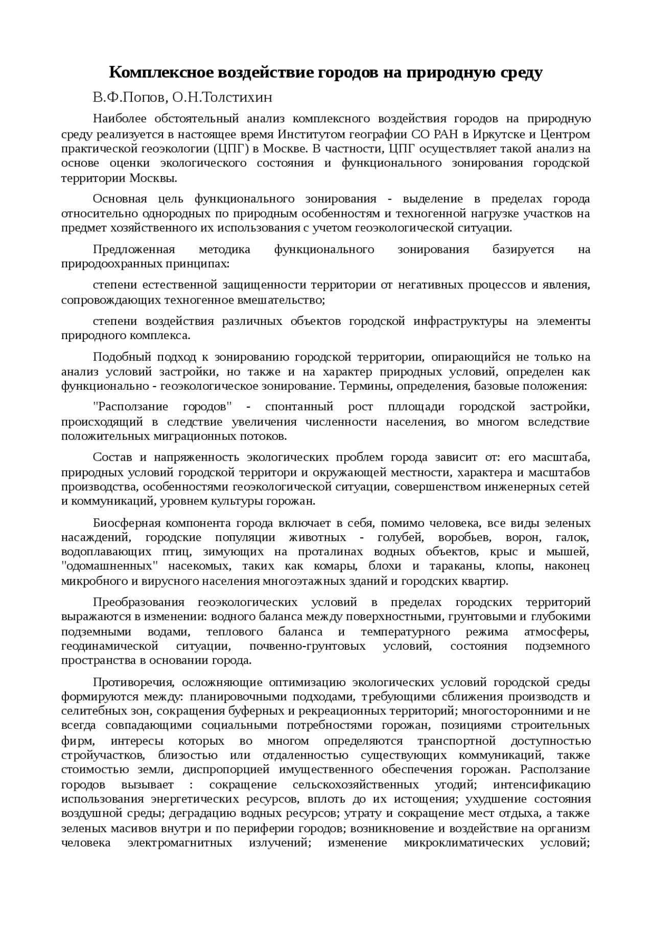 Комплексный анализ города