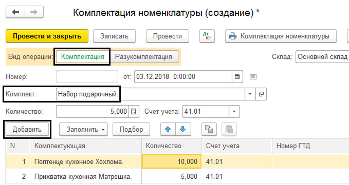 Комплектация товаров в 1