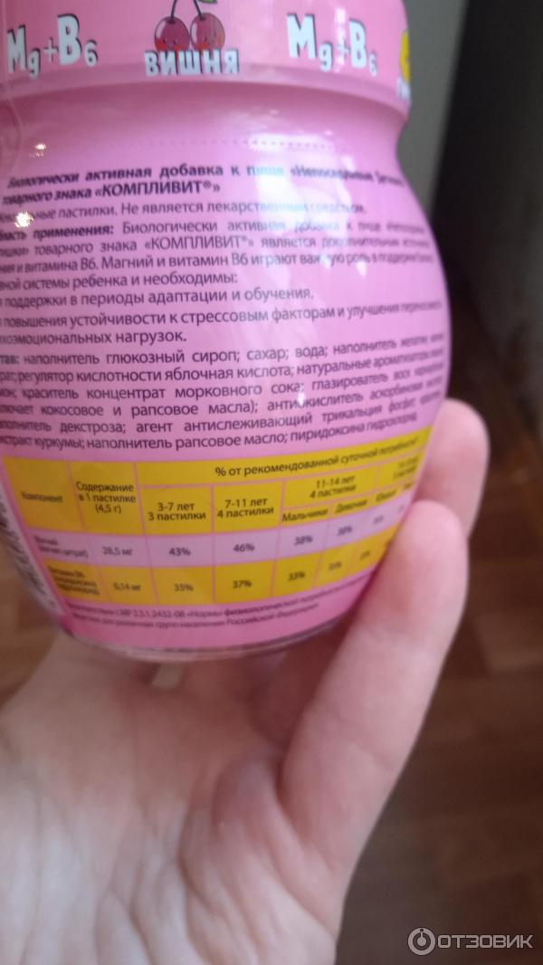 Компливит Активные детишки . Не является лекарственным средством . наполнитель: глюкозный сироп, сахар, вода, желатин, декстроза; витамин С (Lаскорбиновая кислота), ниацин (никотинамид), витамин Е (DL-альфа токоферола ацетат), витамин В 6 (в виде пиридоксина гидрохлорида . . .