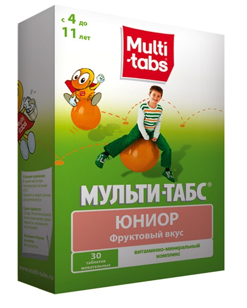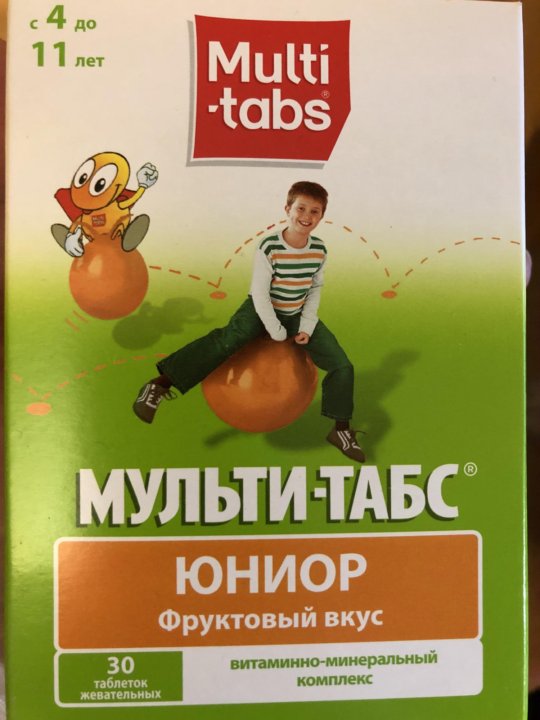 Мульти-Табс Юниор - комбинированное средство, содержащее витамины, а также минералы . Назначается к приему для профилактики и лечения гиповитаминозных состояний у детей . Выпускается препарат в виде жевательных таблеток по 30 и 60 шт . в упаковке . Плюсы: Ускоряет процесс восстановления организма после тяжелых заболеваний Удобная схема приема