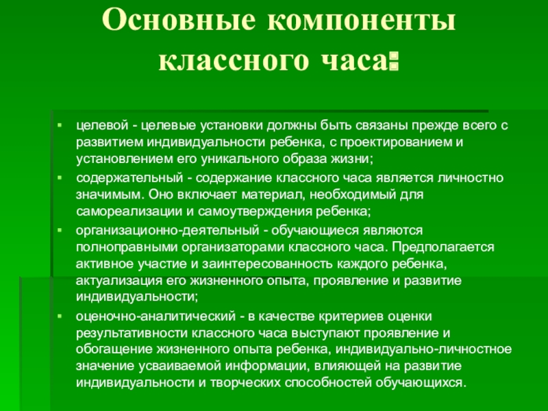 Компоненты классного часа