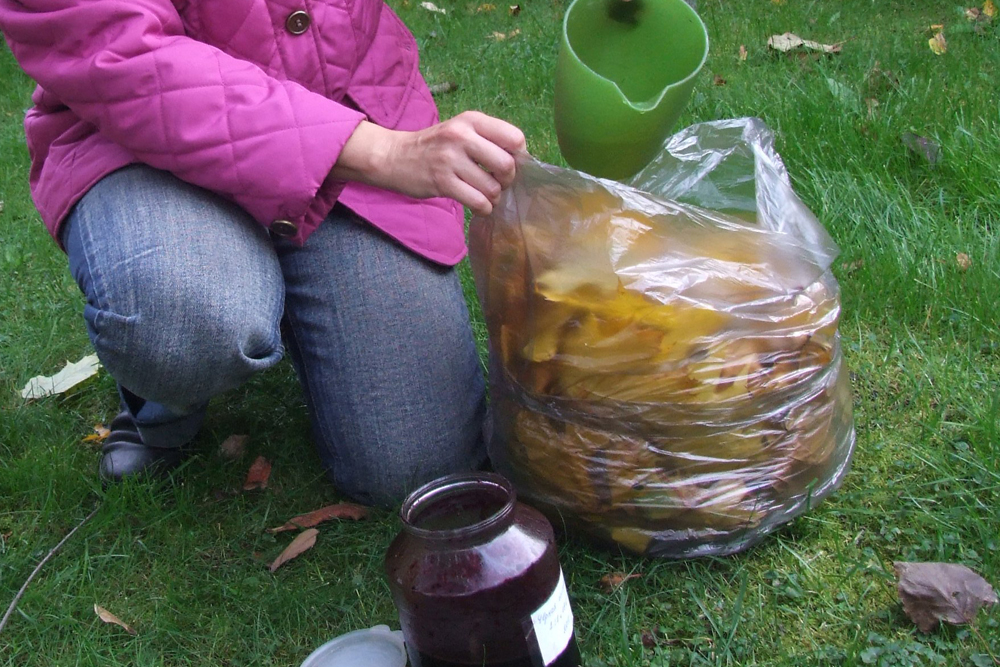 Компост из опавших листьев в мешках
