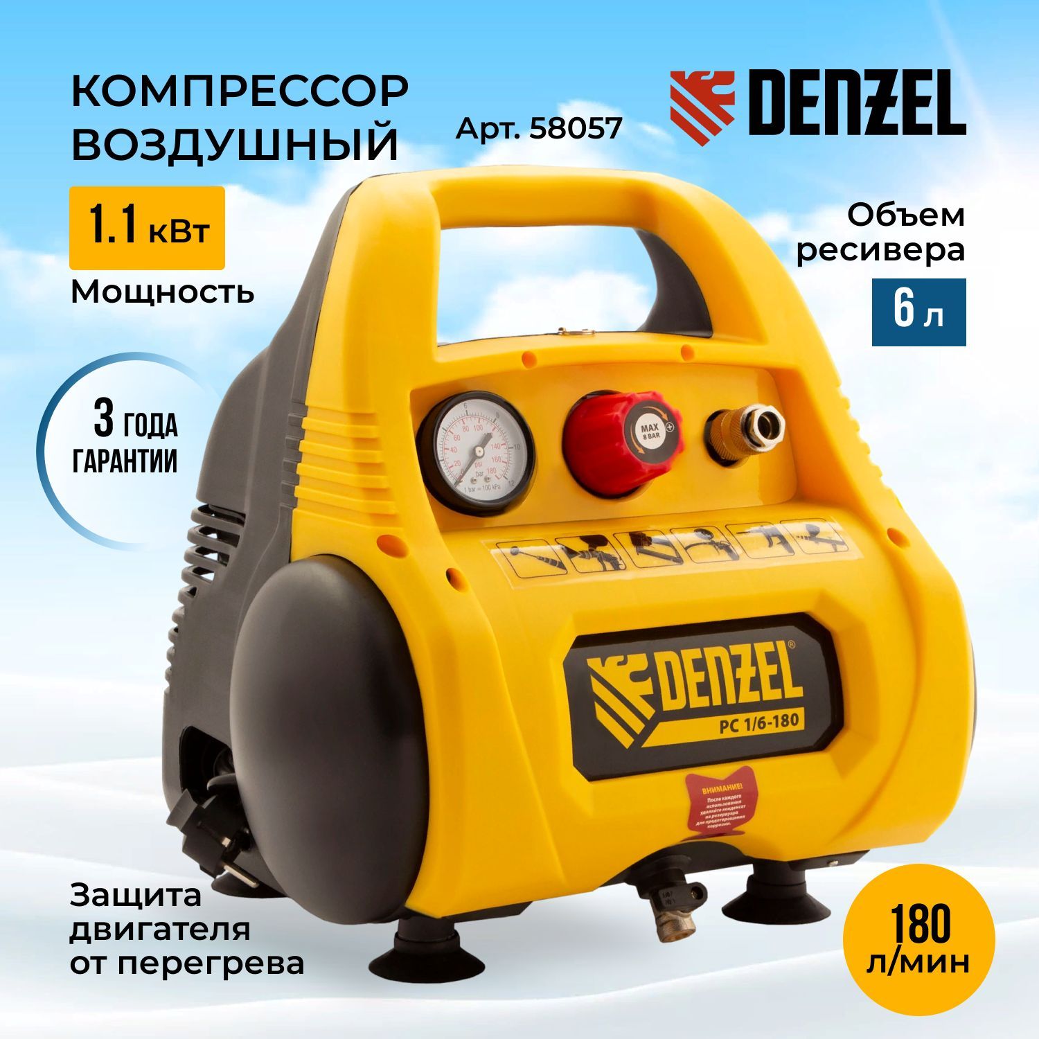 Компрессор воздушный denzel рс 1 6