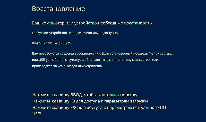 Компьютер требует восстановления