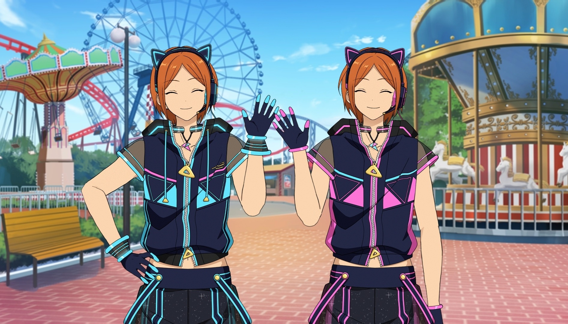А, Анзу-сан? Думаете, мы смотримся очень мило? Если дело в кошачьих ушках, то я уверен, что они подойдут и вам, Анзу-сан~?