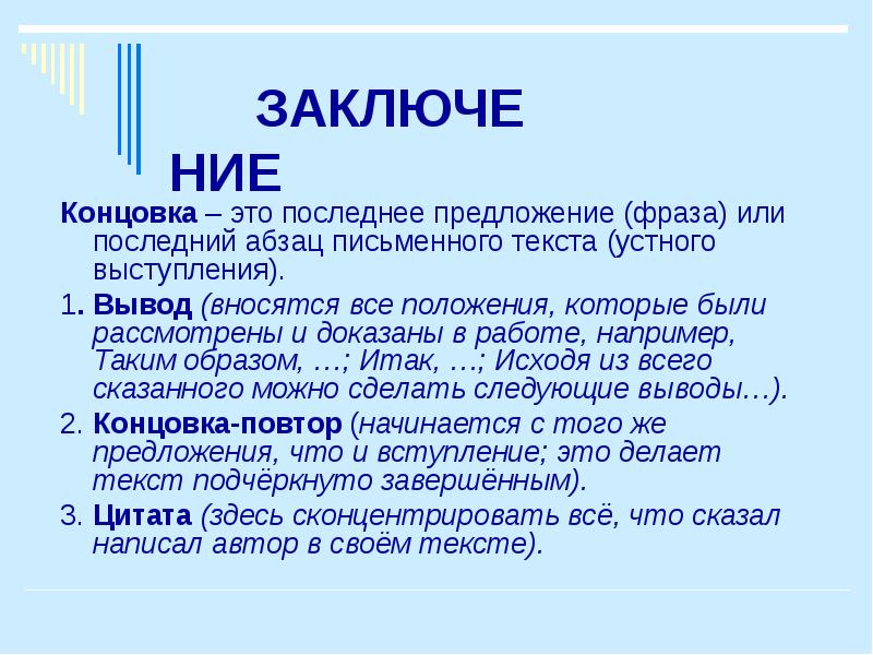 Концовка текста