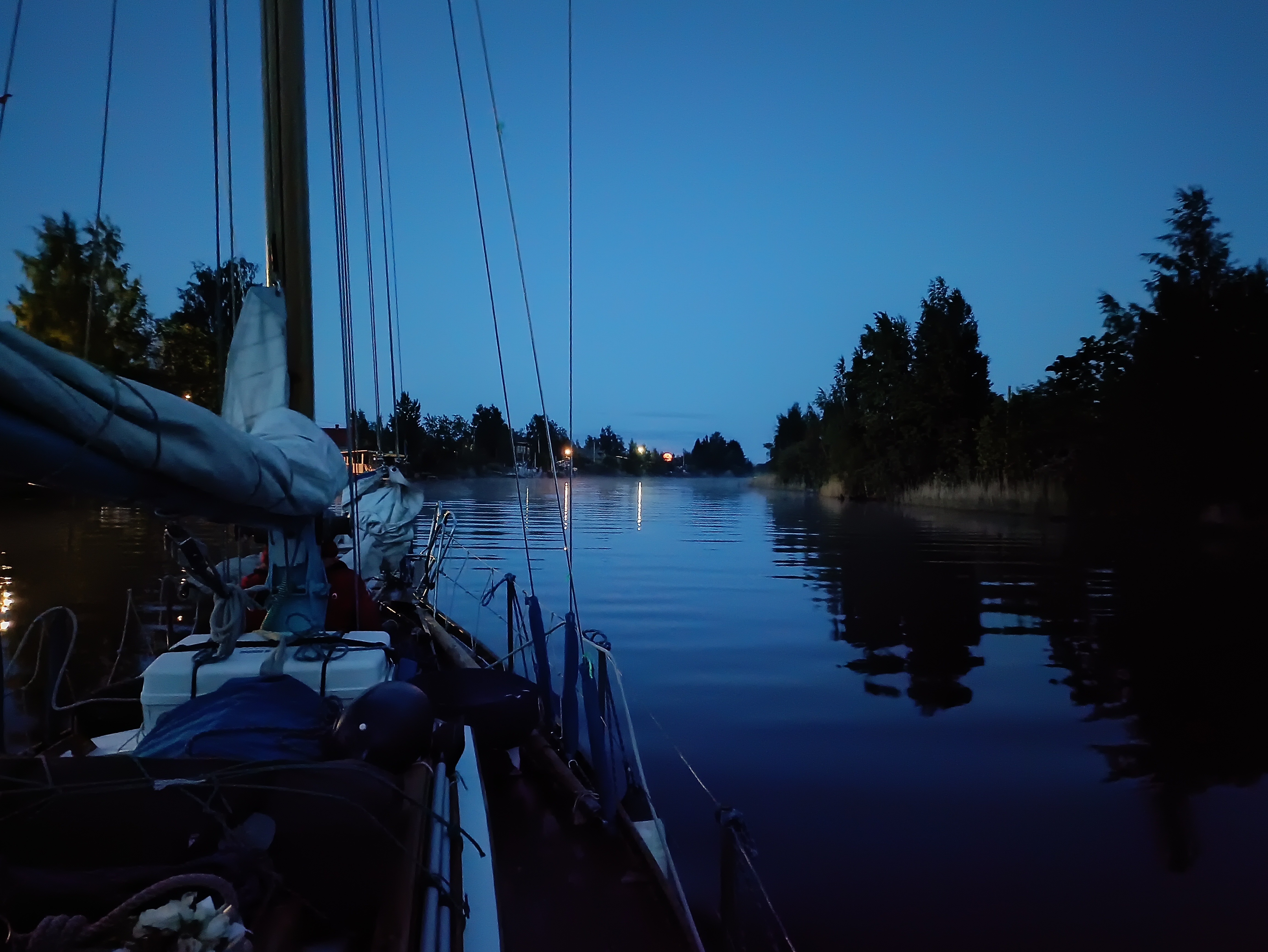 Уже достаточно стемнело, когда добираемся до Свирицы. Малым ходом, в легком тумане стелющемся над водой, добираемся по Новоладожскому каналу до знакомой стоянки. Переход занял 18 часов.