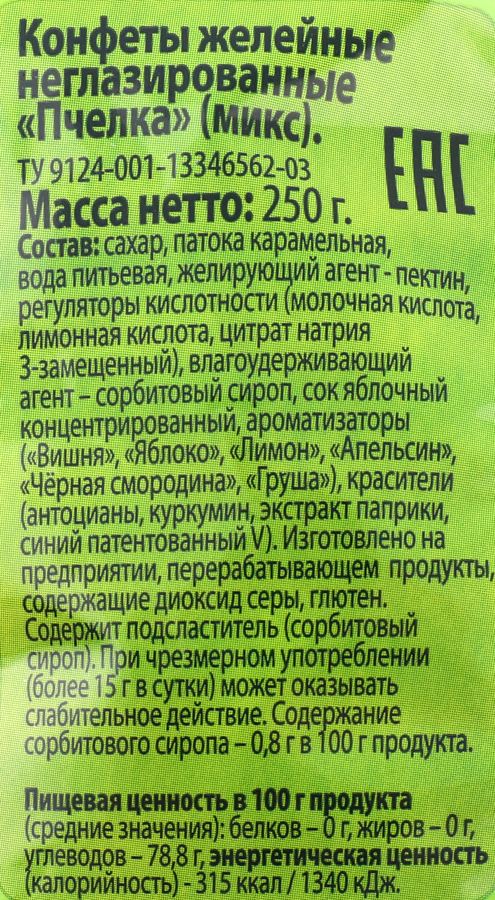 Конфеты желе состав