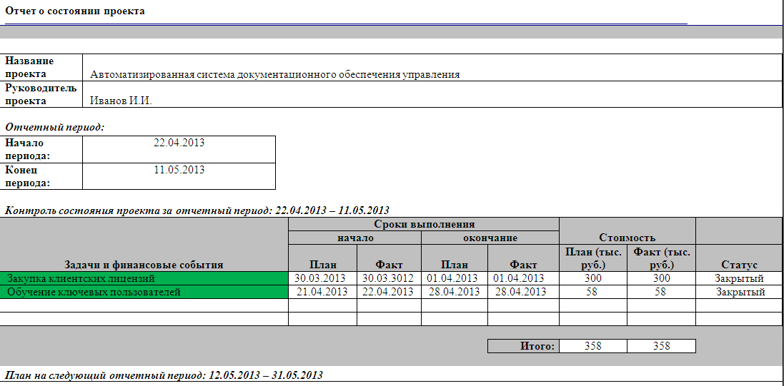 Консолидированный отчет форма