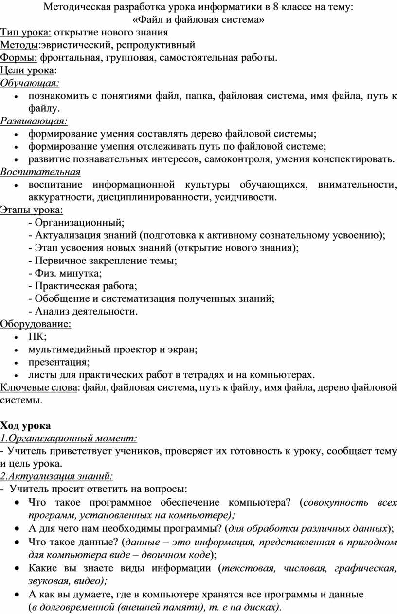 Конспект урока информатики класс по фгос