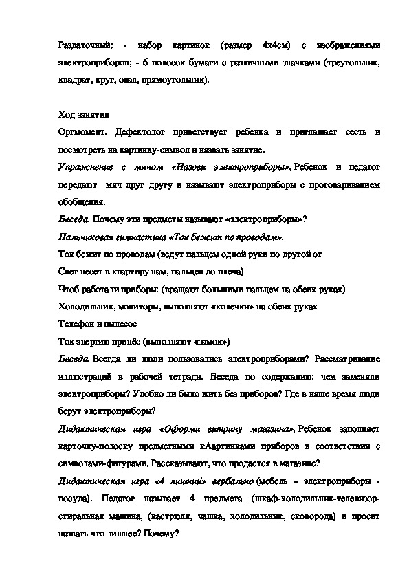 Конспект занятия в то