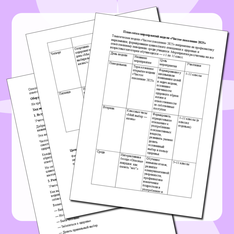 Конспекты мероприятий для подростков