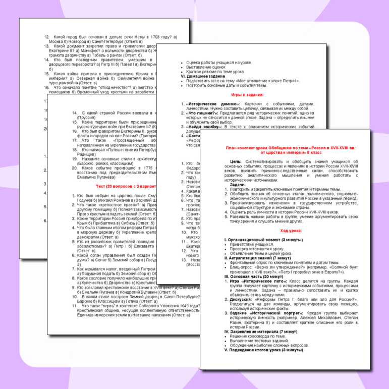 Конспекты уроков истории 8 класс