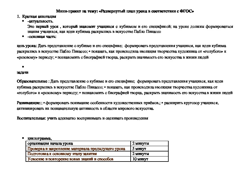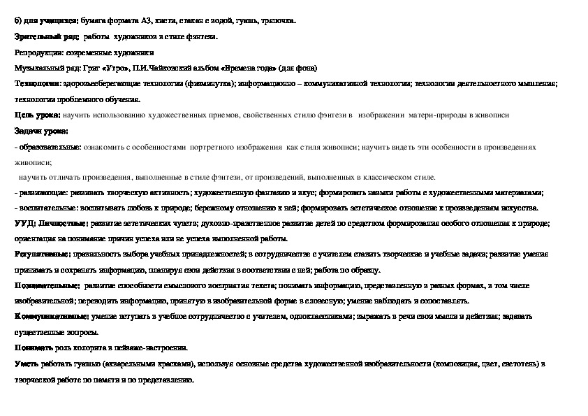 Конспекты уроков по искусству 6 класс