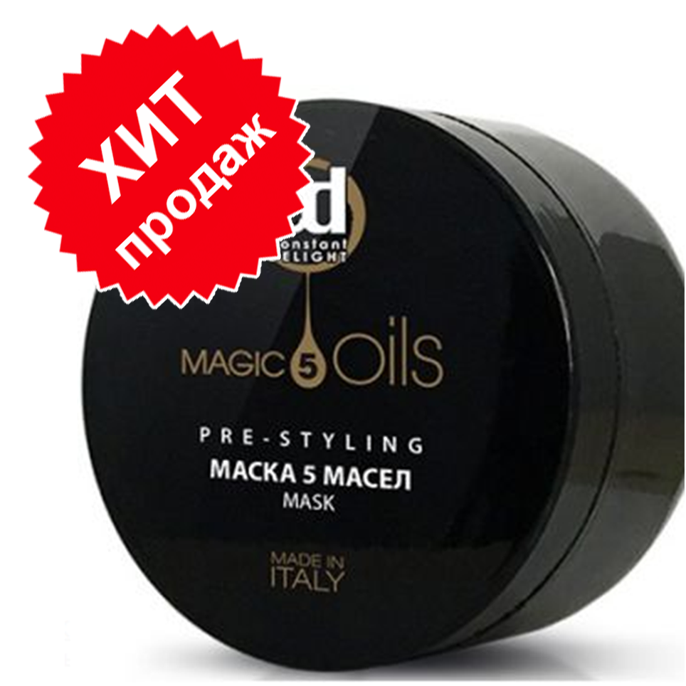 Маска для всех типов волос Constant Delight 5 Magic Oils - для глубокого восстановления волос на клеточном уровне, роскошного блеска и непревзойденной мягкости. Формула маски, состоящая из "5 Магических масел": Макадамии, Хлопка, Жожоба, Авокадо, Арганы, увлажняет, питает, защищает структуру чувствительных, пористых волос, возвращая им жизненную силу. Драгоценные масла обеспечивают волосам превосходный уход, а богатая текстура - потрясающий внешний вид. Маска имеет сияющий перламутровый блеск и подходит для всех типов волос.