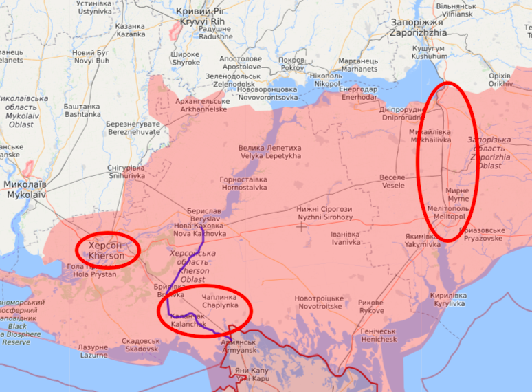 Но что-то мне подсказывает (если хотите, называйте это интуицией)... в Херсоне русня надолго не задержится. Причём, вполне реальным станет выход украинских войск на рубеж Каланчак - Чаплынка - Петропавловка. И вот тогда, "трагическая судьба" Мелитопольско - Васильевской группировки войск противника встанет во весь свой неприглядный рост... Как именно с "технической стороны" будет решаться этот вопрос, я, честно говоря, конечно догадываюсь (желающим так же подумать над этим, рекомендую обратить внимание на международные события вокруг Украины, происшедшие в течение последних 4-х дней), но большего не скажу... и даже в комментах не просите... назойливых буду банить.