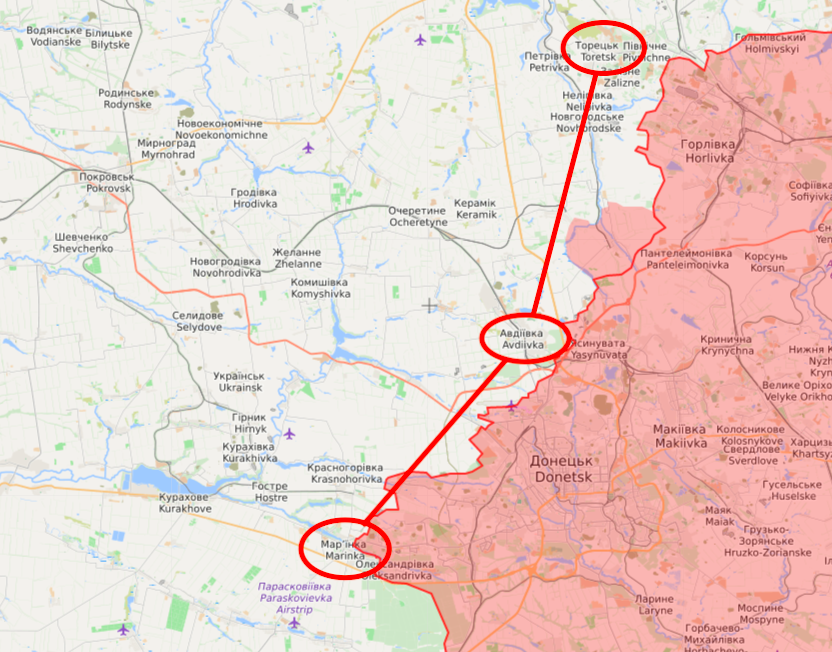 2) По линии Торецк - Авдеевка - Марьинка, подразделения противника так же пытаются "совершать фрикции", но амплитуда мала и не приносит их командованию желаемого результата, ограничиваясь локальными вклинениями тактического масштаба. Однако, несомненно присутствует стремление сгруппировать некий "ударный кулак" в раойне Торецка для прорыва в северо-западном направлении...