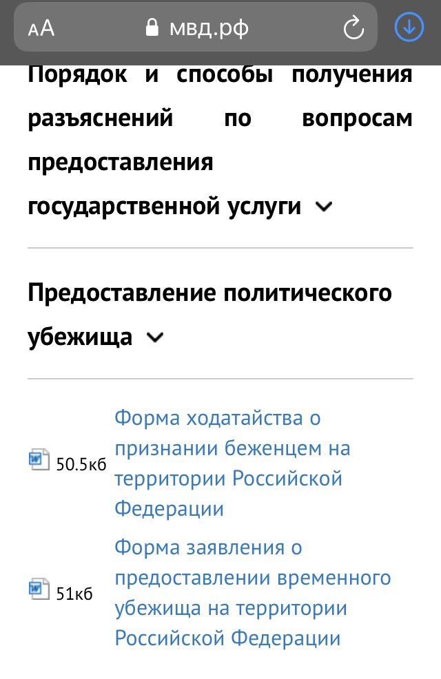 («По вопросам оказания помощи, прибывшим на территорию Российской Федерации в экстренном массовом порядке»).