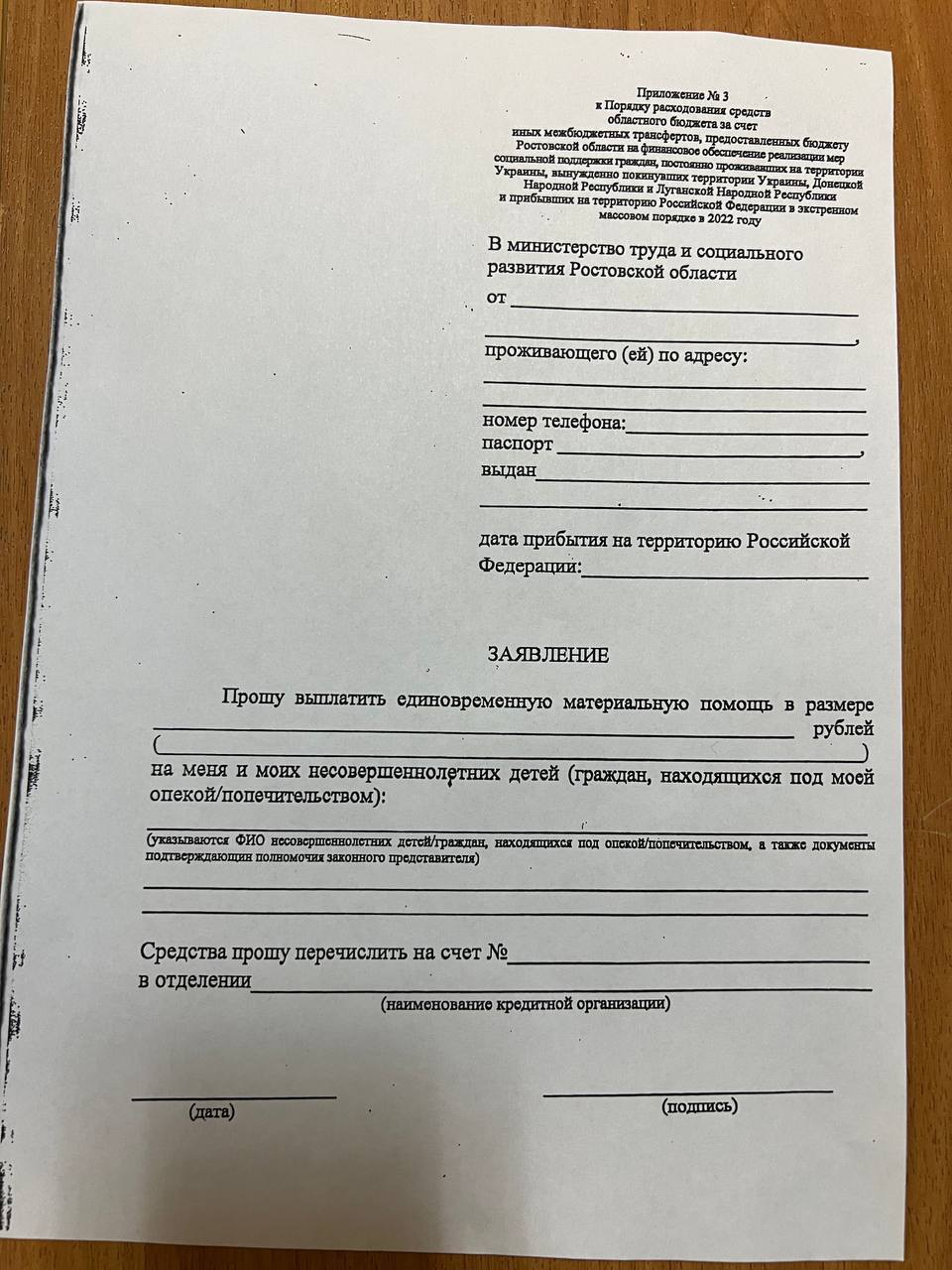 Адреса в Ростове и Бланк заявления на фото