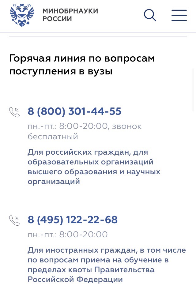 ☎️Горячие линии и телефоны: