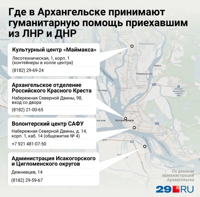 Желающие оказать помощь, могут доставить ее с 22 по 28 февраля по следующим адресам: