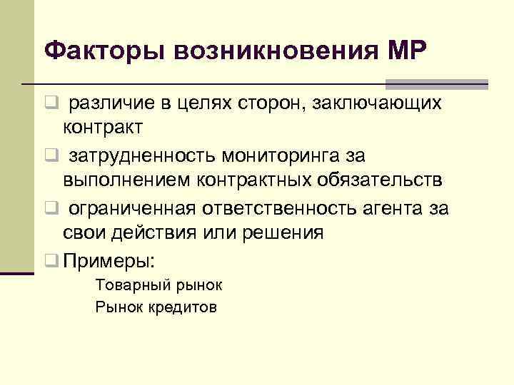 Контракт происхождение