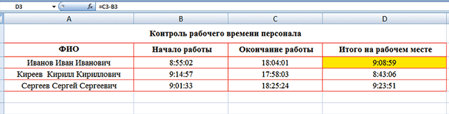 Контроль времени работы сотрудника