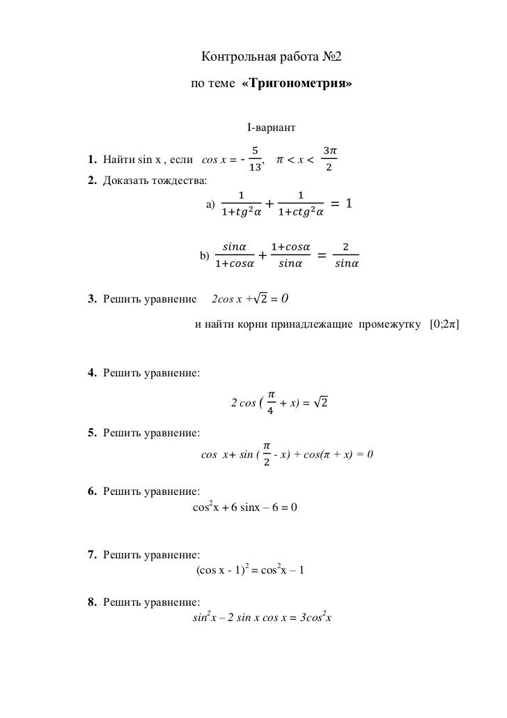 Контрольная работа по тригонометрии