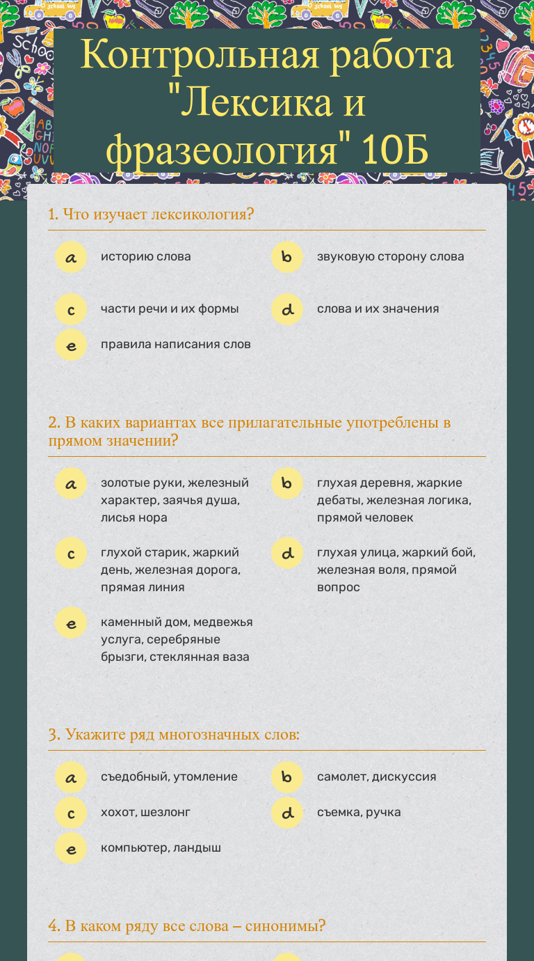 Контрольная работа по разделу «Лексика . Фразеология» в 10 . . .