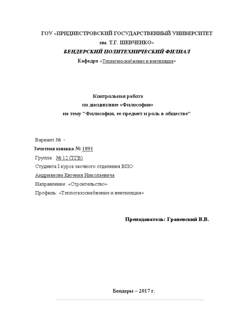 Готовая контрольная работа по дисциплине "Философия" для . . .