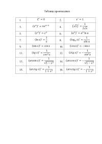 Таблица производных, таблица производных функций для . . .