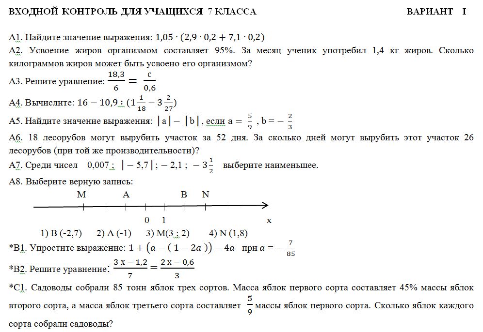 Входные контрольные работы по математике | Методическая . . .