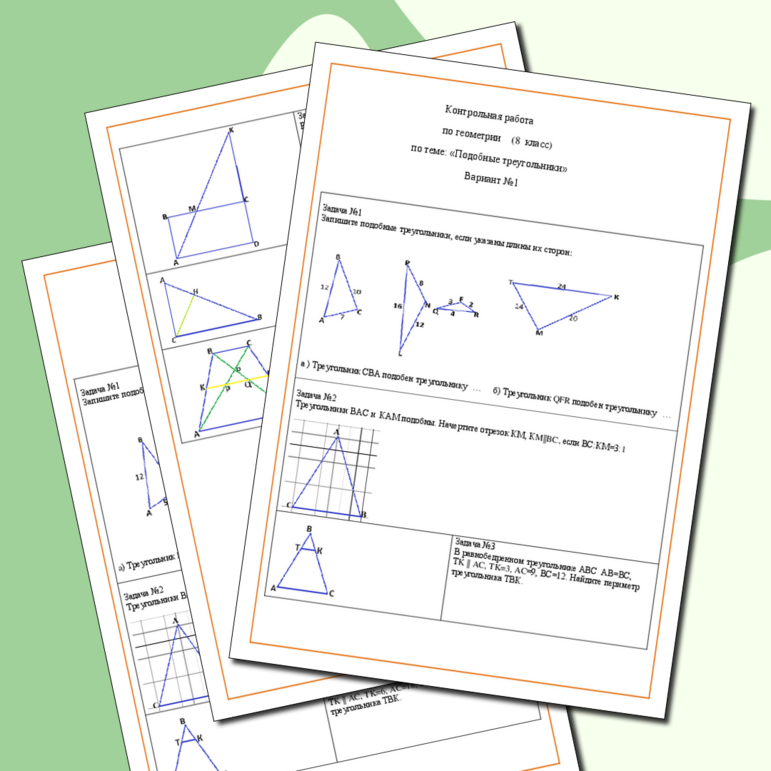 Контрольная работа 4 подобные треугольники