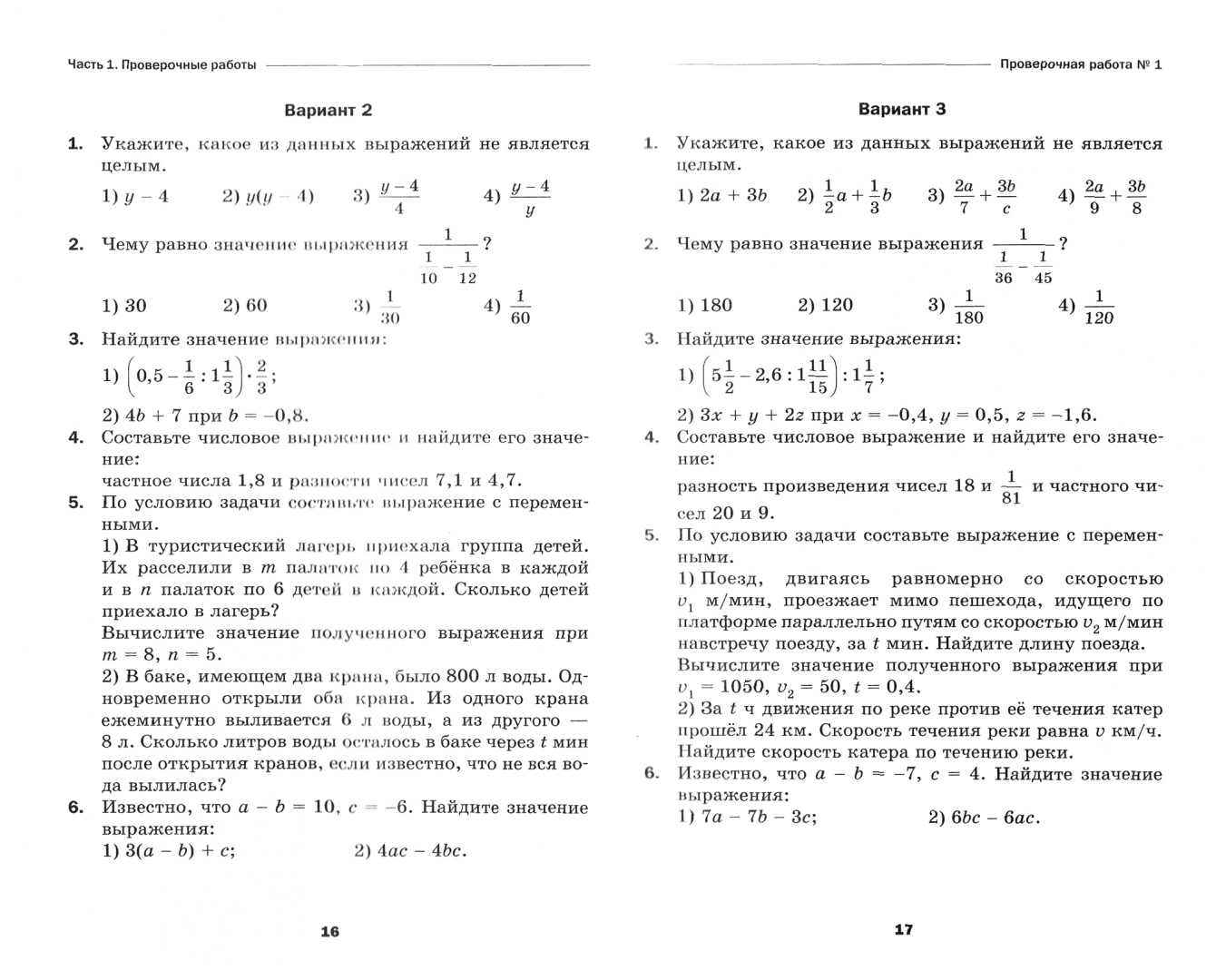 Контрольная работа 6 класс алгебра мерзляк