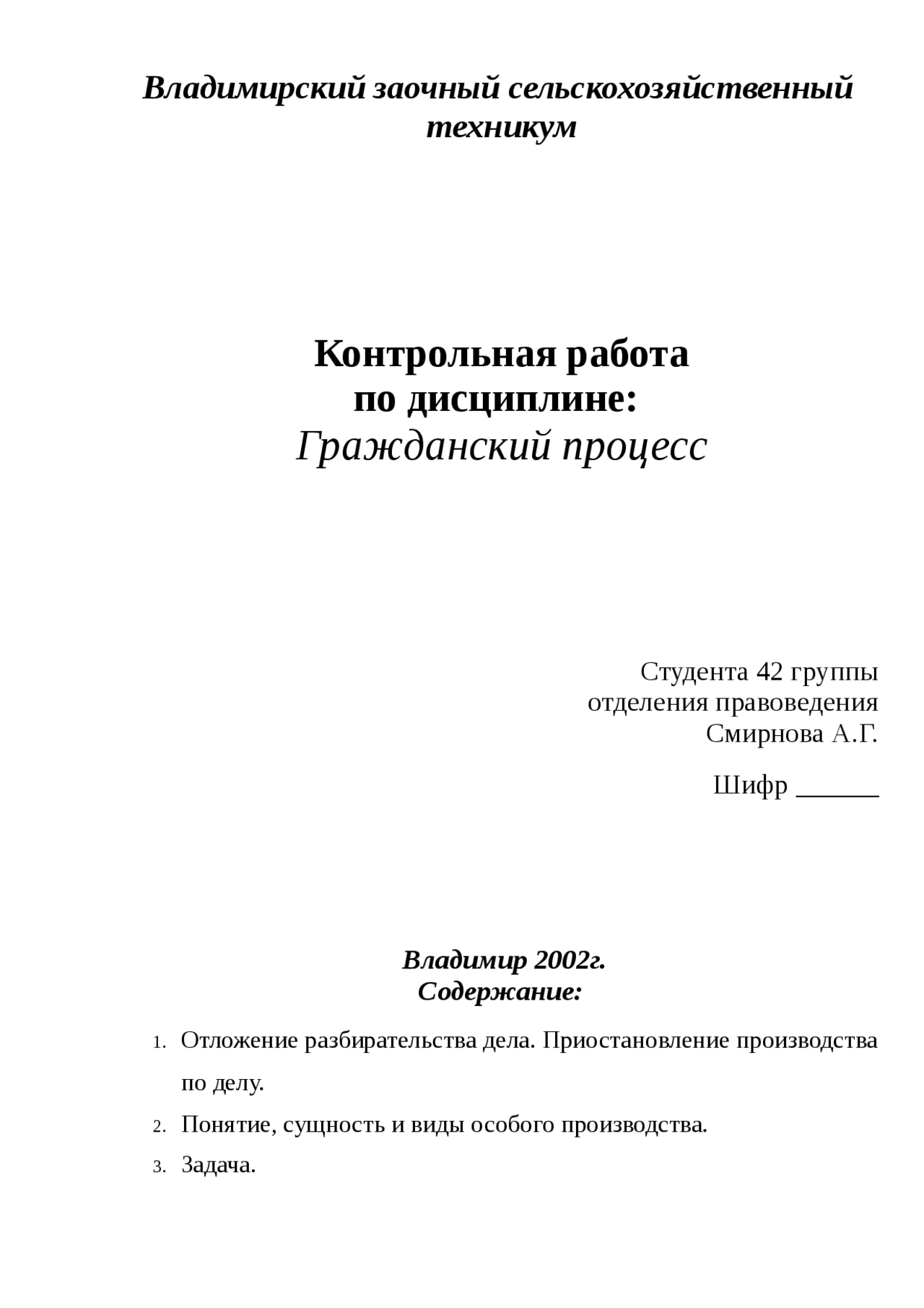 Контрольная работа гражданский процесс