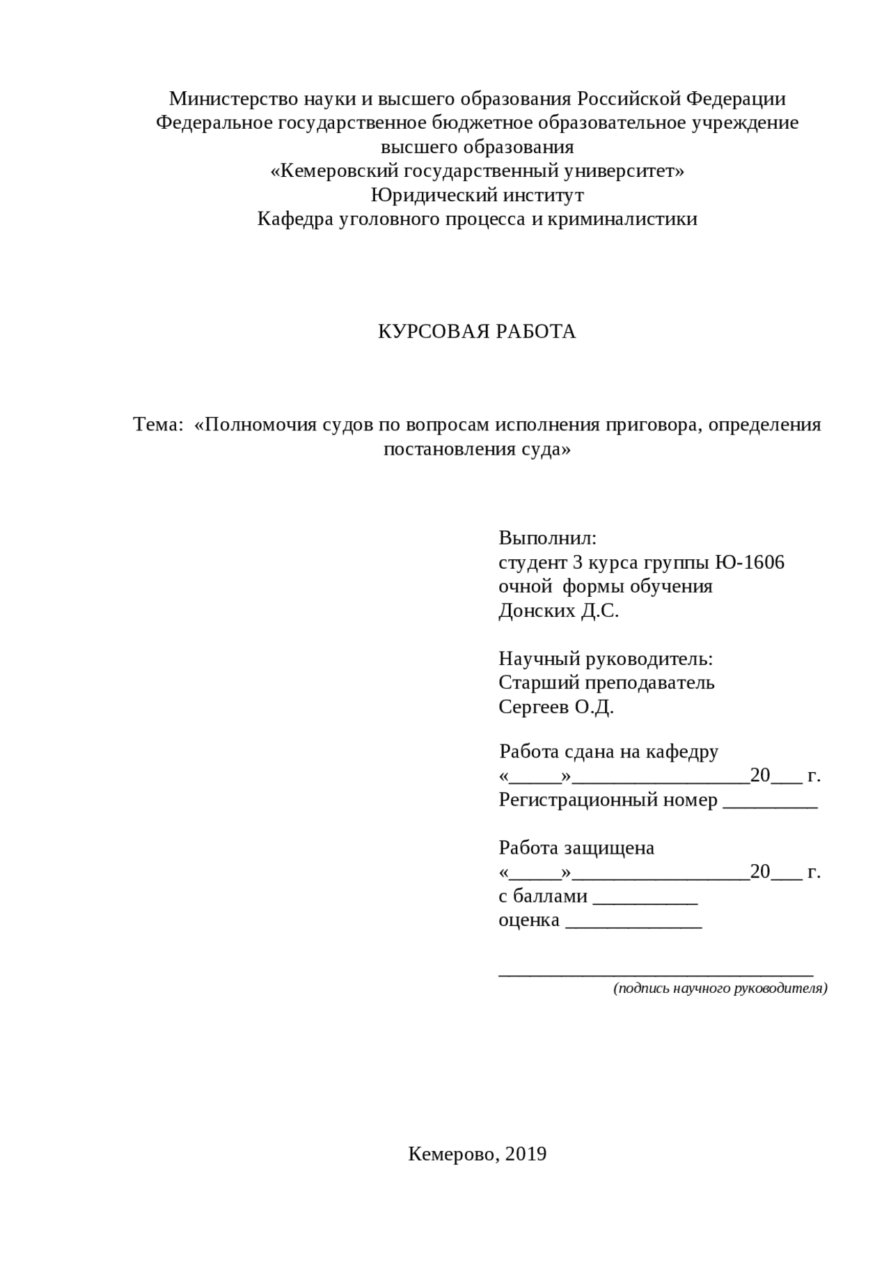 Приговор суда | курсовая работа