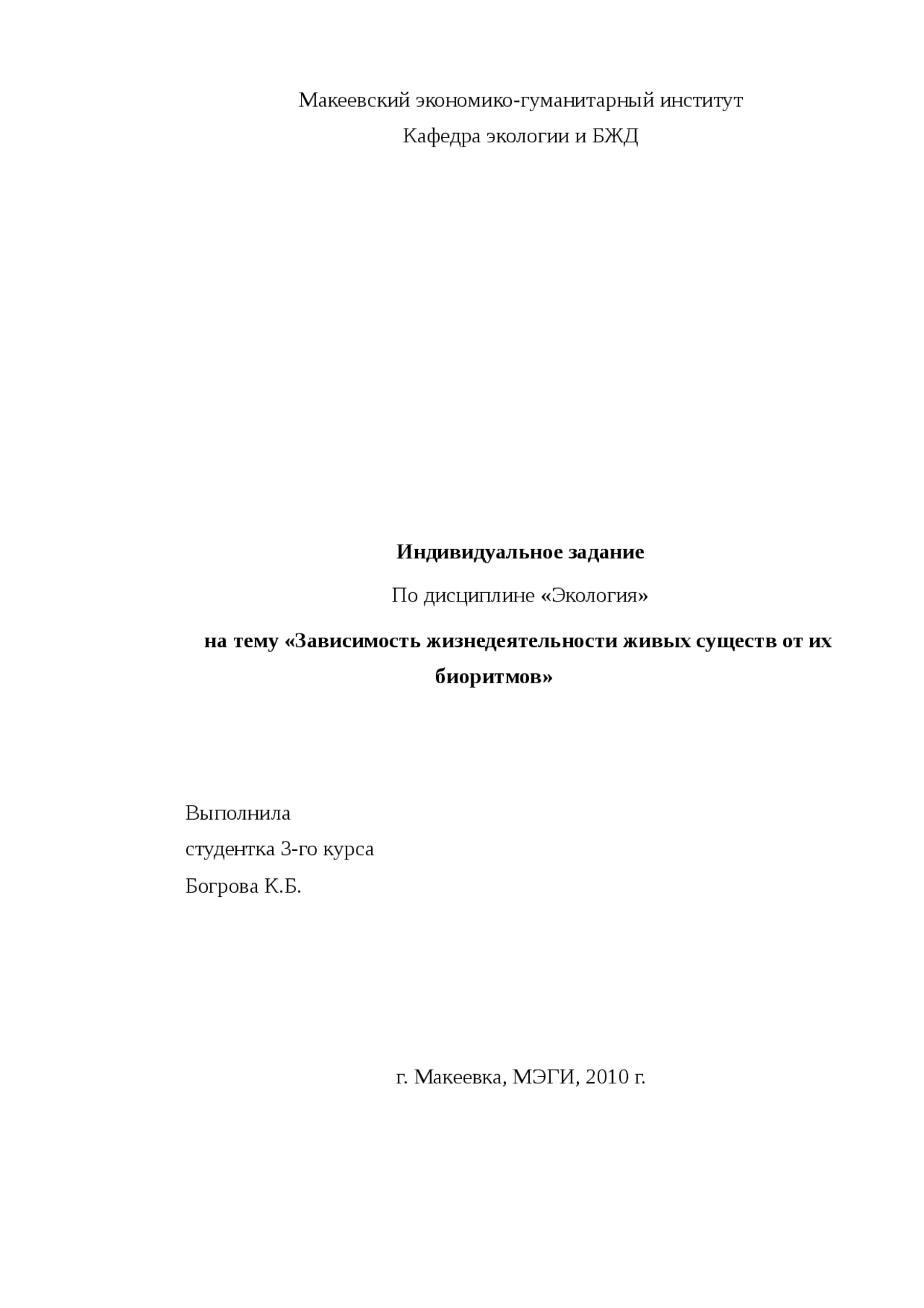 Контрольная работа по экологии по теме: «Роль животных в . . .