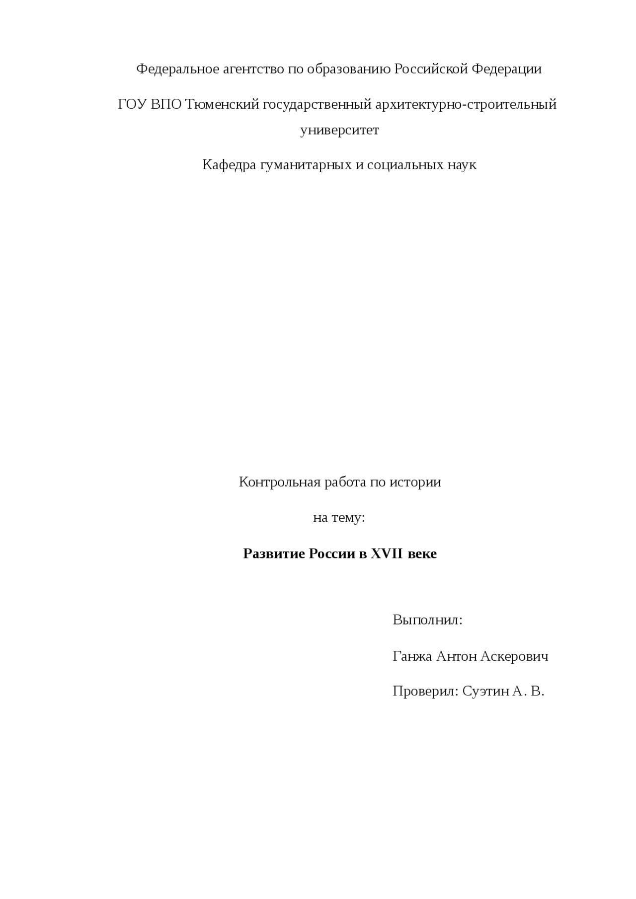 Контрольная Работа По Теме «Россия В Xvii В . . .