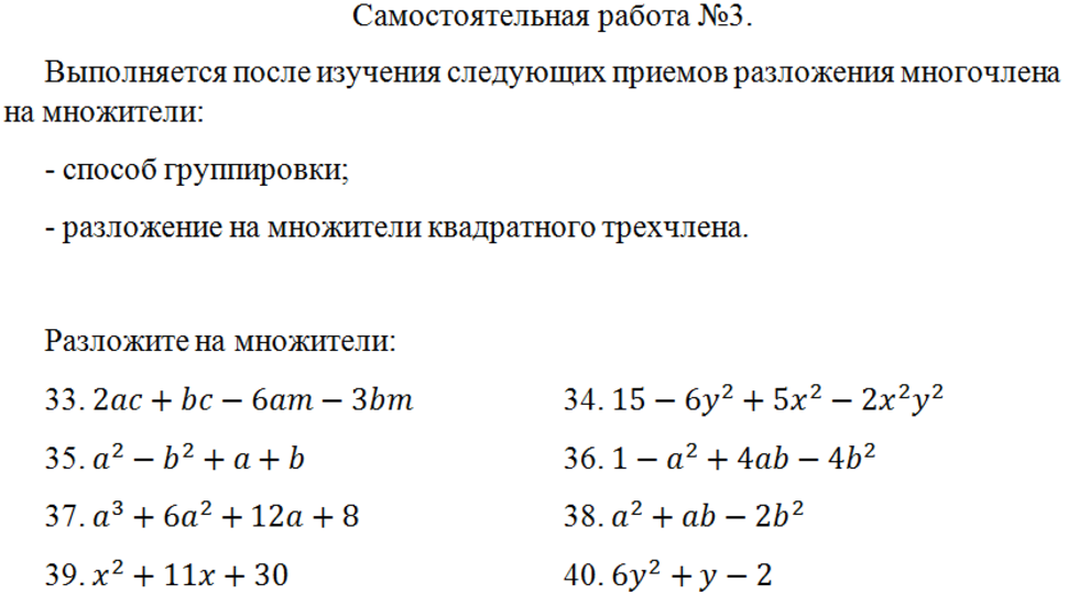 Контрольная работа разложение множителей 7 класс