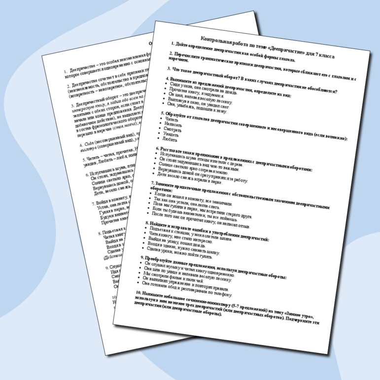 Контрольная работа тема деепричастие 135 фото