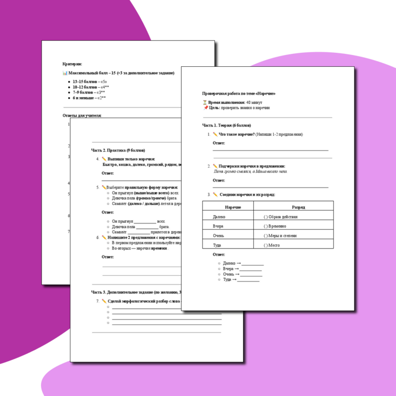Контрольная работа тема наречие