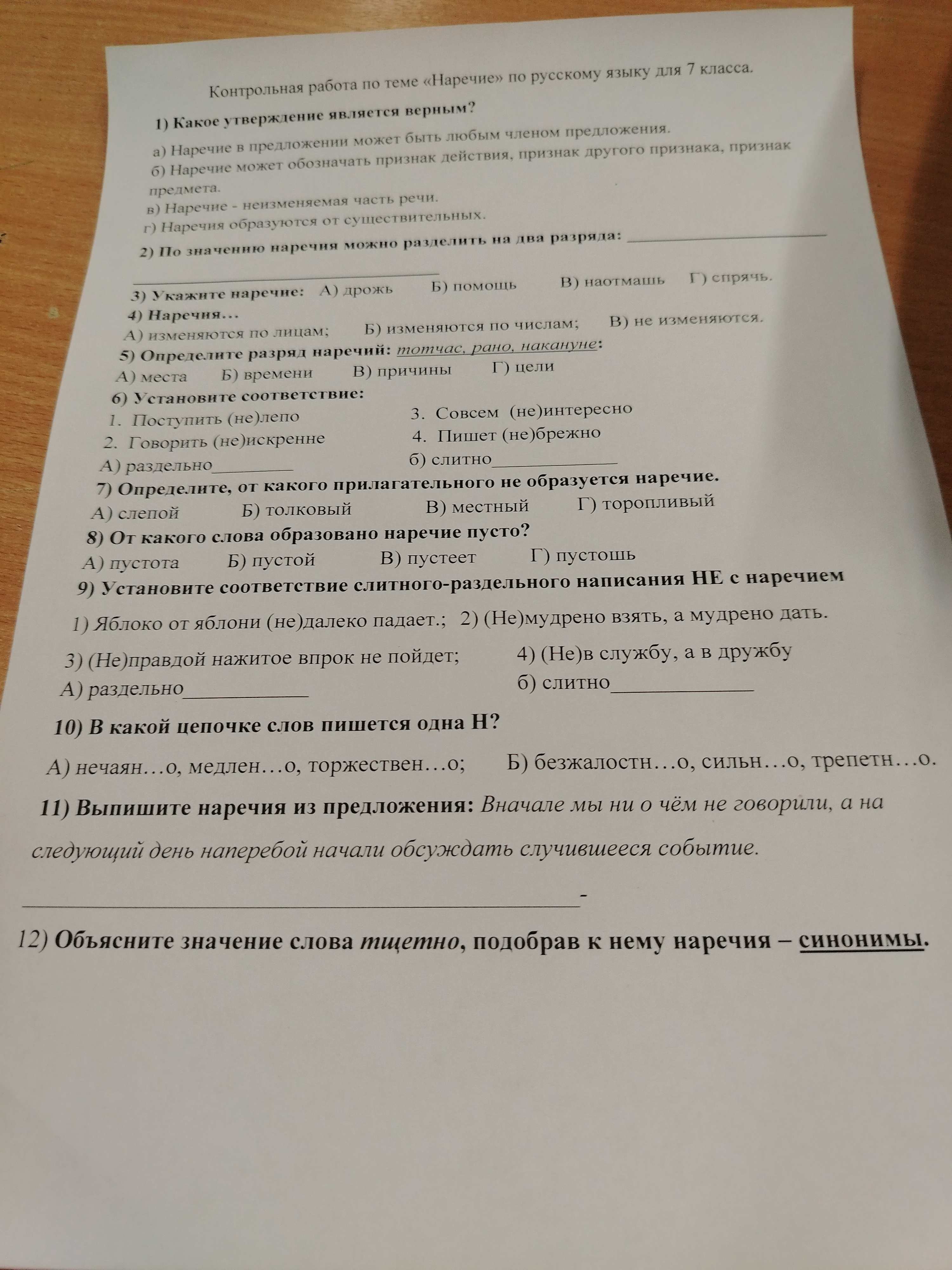 Контрольная работа тема наречие 129 фото