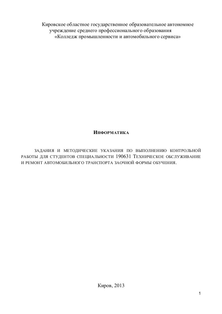 Информатика . Методические указания и контрольные задания . . .