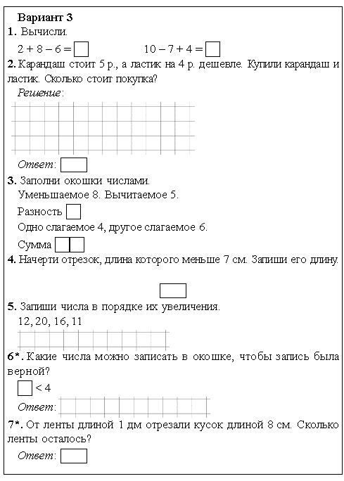 Контрольные работы 3 класс перспектива 3 четверть