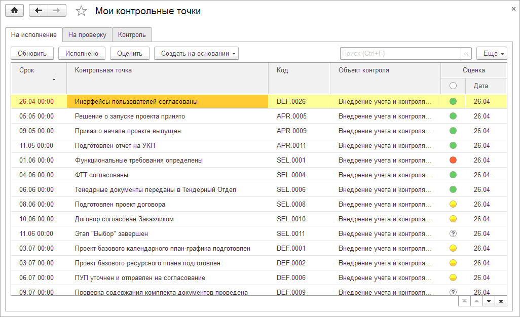 Контрольные точки контроля